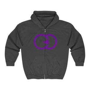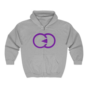 Unisex Full Zip Hoodie with Modern Purple Symbol - Perfect for Every Occasion