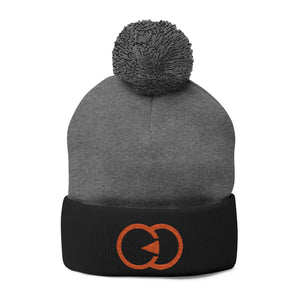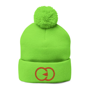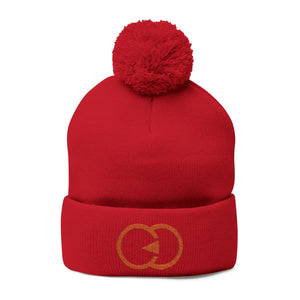 Cozy Pom-Pom Knit Cap with Embroidered Design